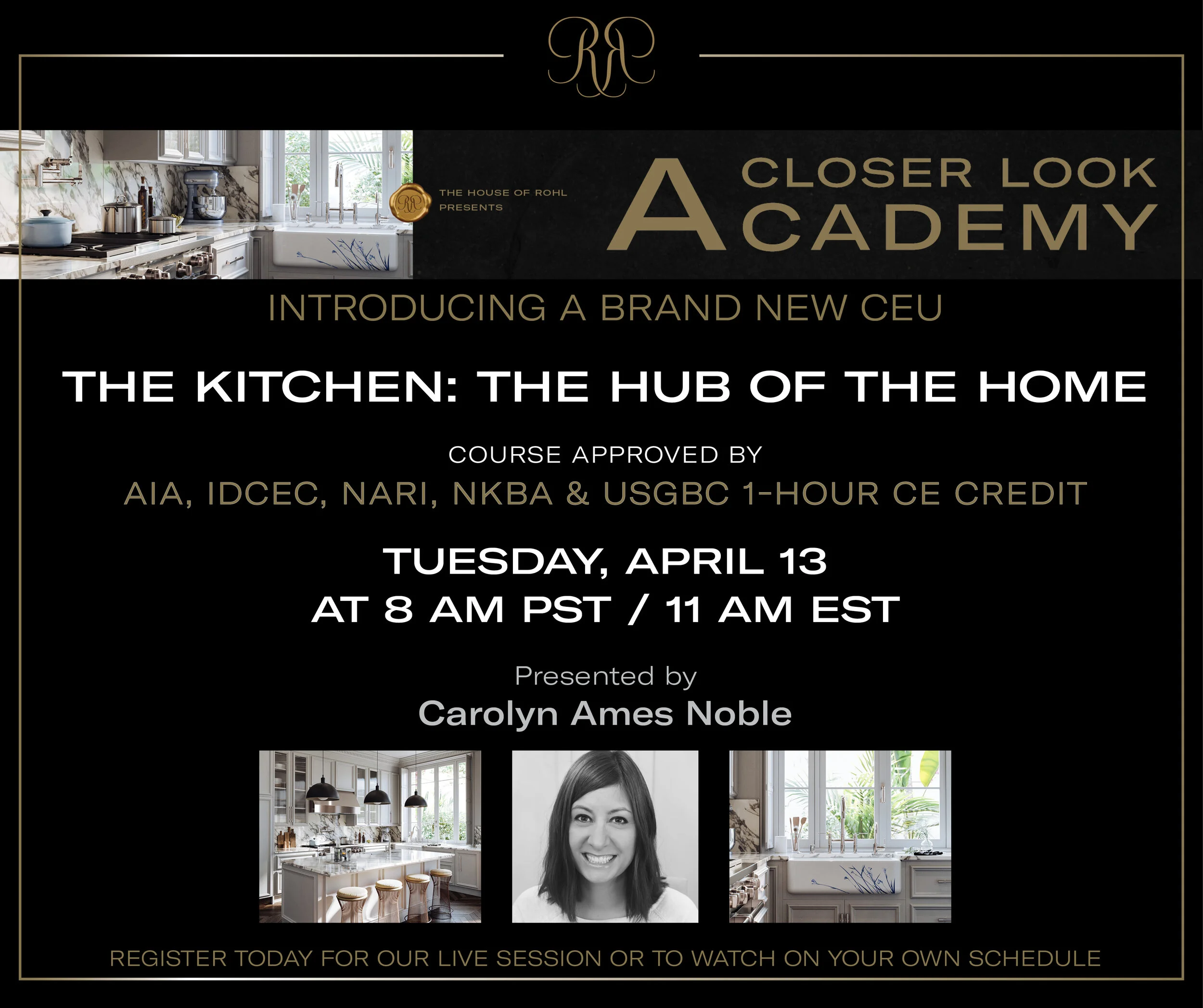 Please join Ames Design Collective and The House of Rohl A Closer Look Academy Tuesday, April 13 at 8 am PT/ 11 am ET by registering here!